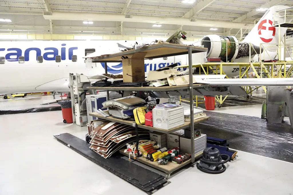 Para ello, se requiere un importante desmontaje de la aeronave, que puede incluir la remoción completa de la cabina de pasajeros, los asientos del cockpit, paneles, tapas de inspección de tanques de combustible, entre otros elementos.