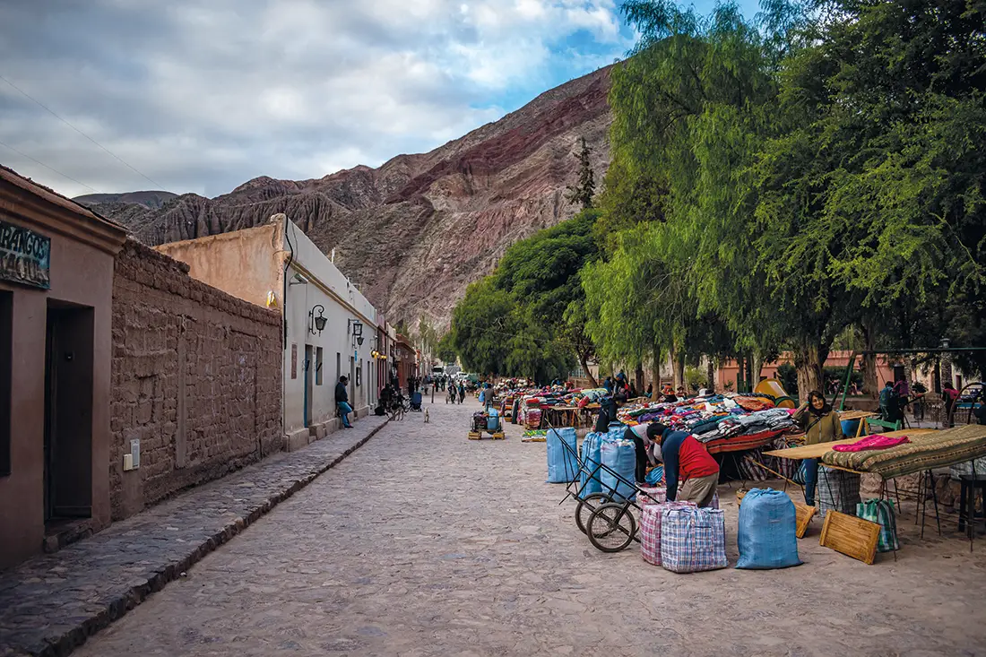 Cada villa de la Quebrada conserva vestigios de distintas épocas. Purmamarca, con su iglesia barroca de 1648 y callecitas empedradas, contrasta con Tilcara, donde la pucará (fortaleza) preincaica domina el valle. Humahuaca, centro administrativo colonial, exhibe fachadas pintadas de vivos colores y el monumento a los Héroes de la Independencia en la plaza principal.